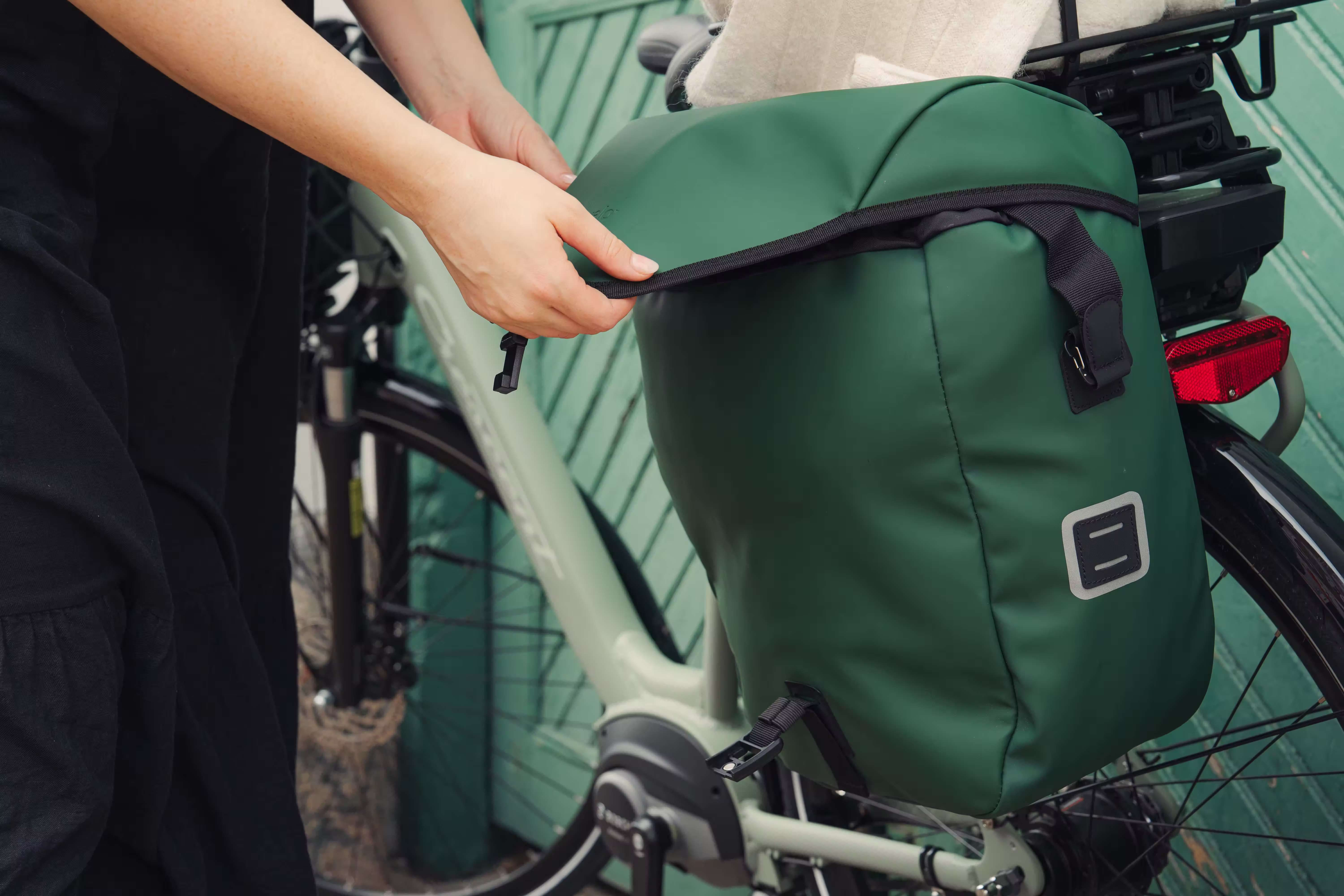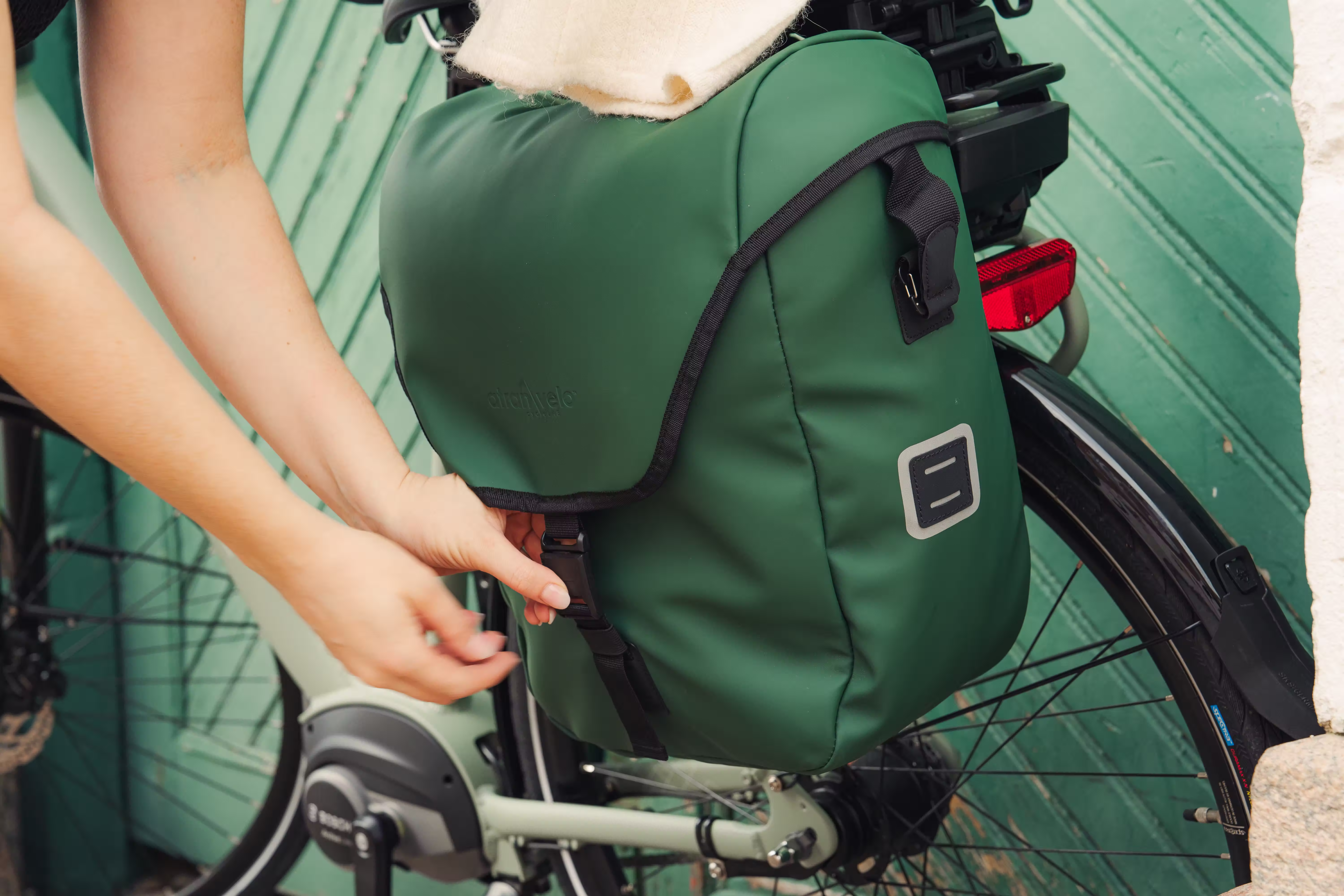 This is a bicycle pannier series with integrated AVS SIDE system, it’s both stylish and functional. The water-resistant bag comes in three matte colours: black, green and rust.