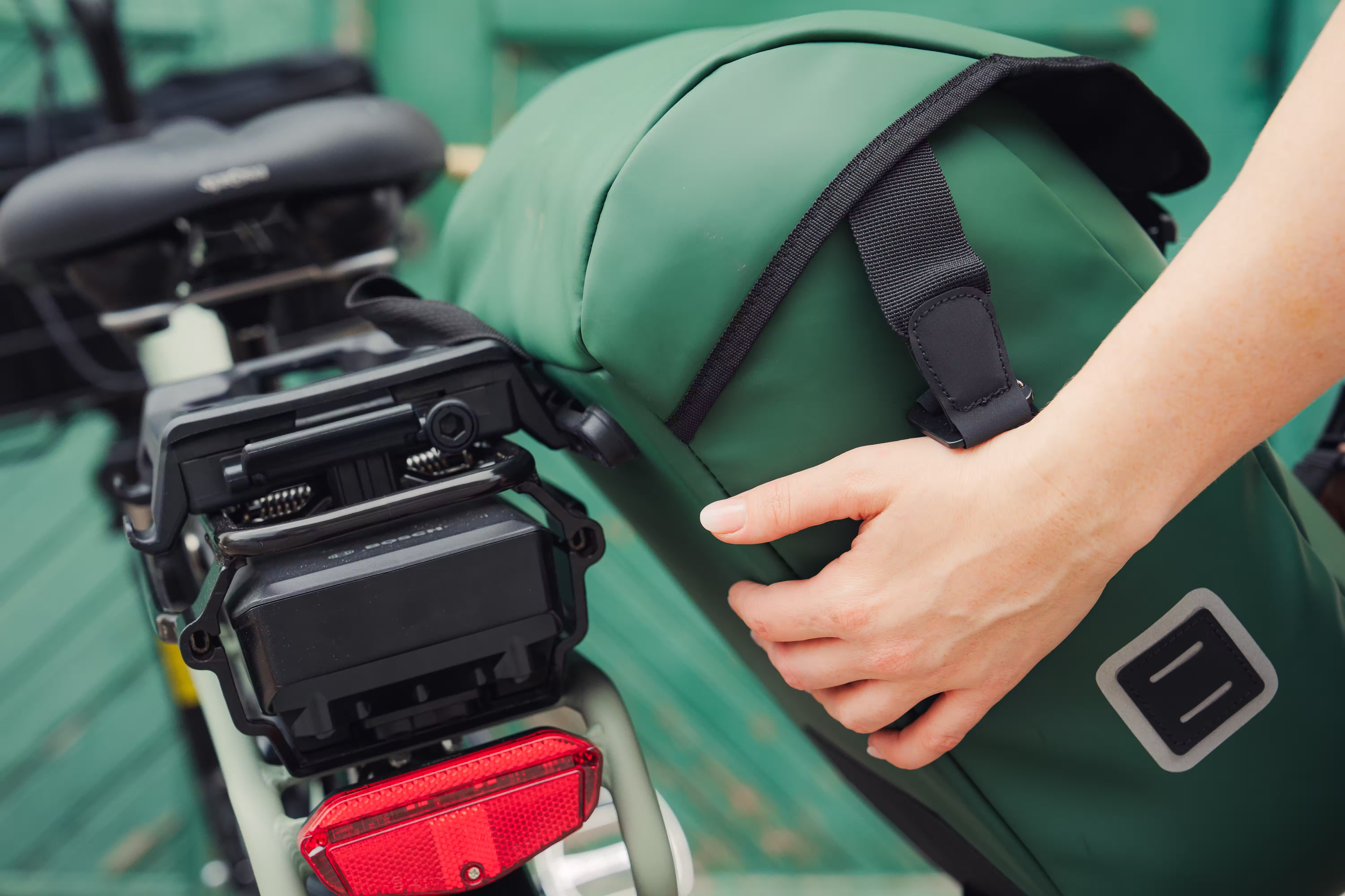 Can quickly and easily be detached and used as a shoulder bag thanks to an extra strap. For added safety, there’s a reflective loop to attach a rear light. One bag is included.