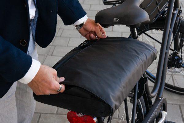 All your belongings are kept safe under the waterproof top cover and strong magnetic closure. The adjustable padded shoulder strap makes it comfortable to carry and our hidden AVS system keeps your bag secured and out of your way when biking.